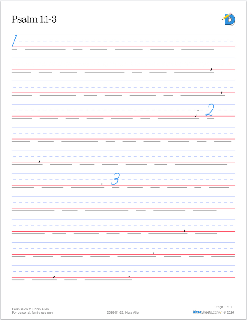 When I first used DittoSheets in my own home, I use the our software to recreate a spelling curriculum I had used in the past, only with text that I wanted my student to memorize, e.g. Scripture.